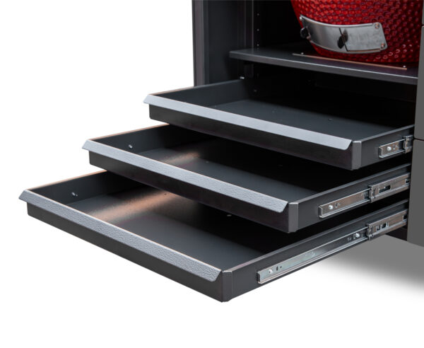 • trīs ietilpīgas atvilktnes – katliem, pannām vai pat kazanam